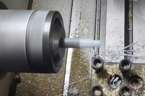 Chip-breaking function disabled (with a cutting depth of 2mm on one side, chips cannot be broken, and they wrap around the workpiece surface).