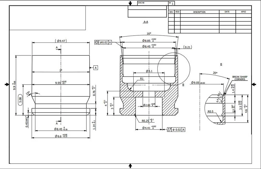 (3) Accuracy requirements: Most dimensions are ±0.1 mm, and the local H11 is fully within the controllable range of the SL series 0.01 mm accuracy level.